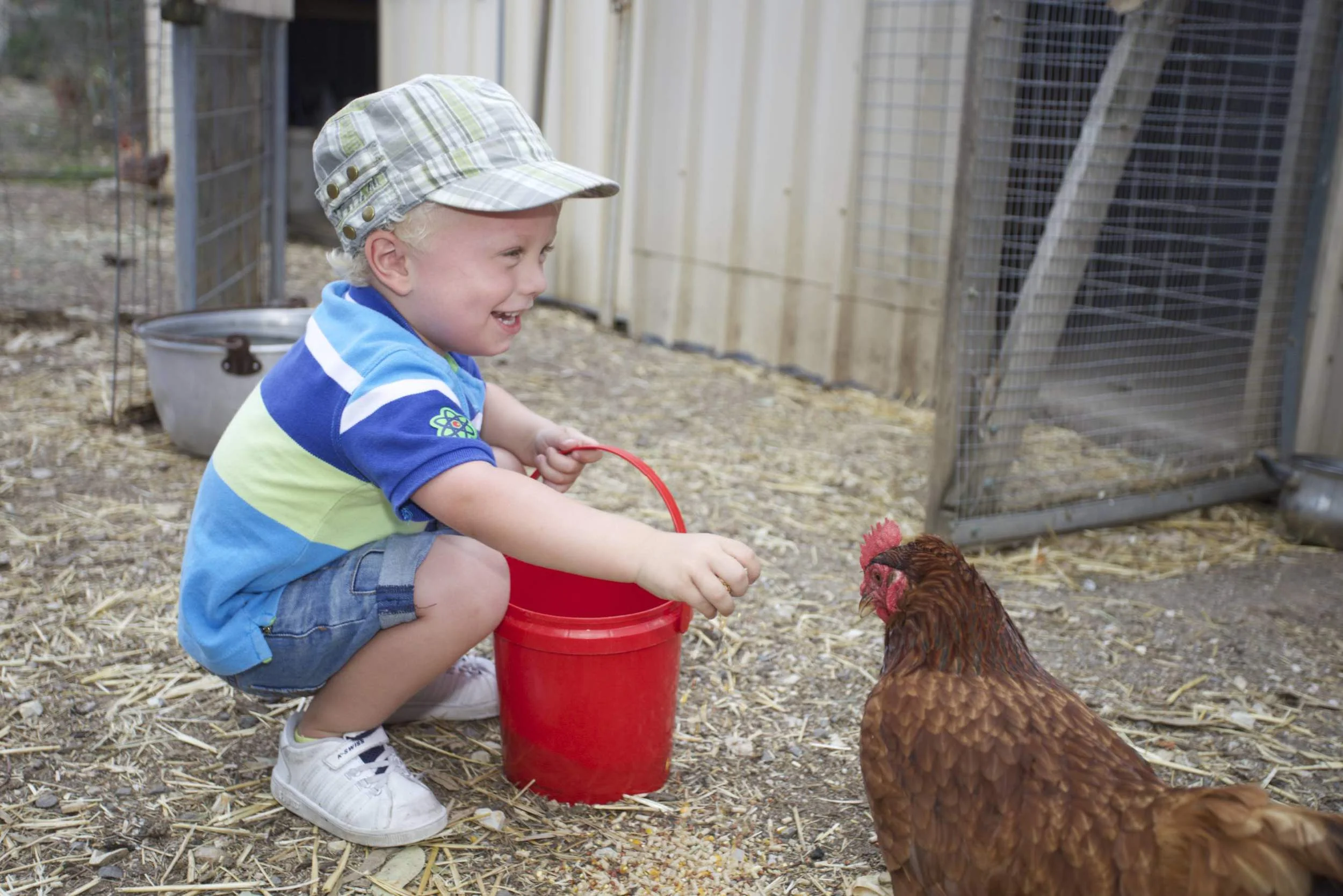 Feeding the chickens and collecting eggs