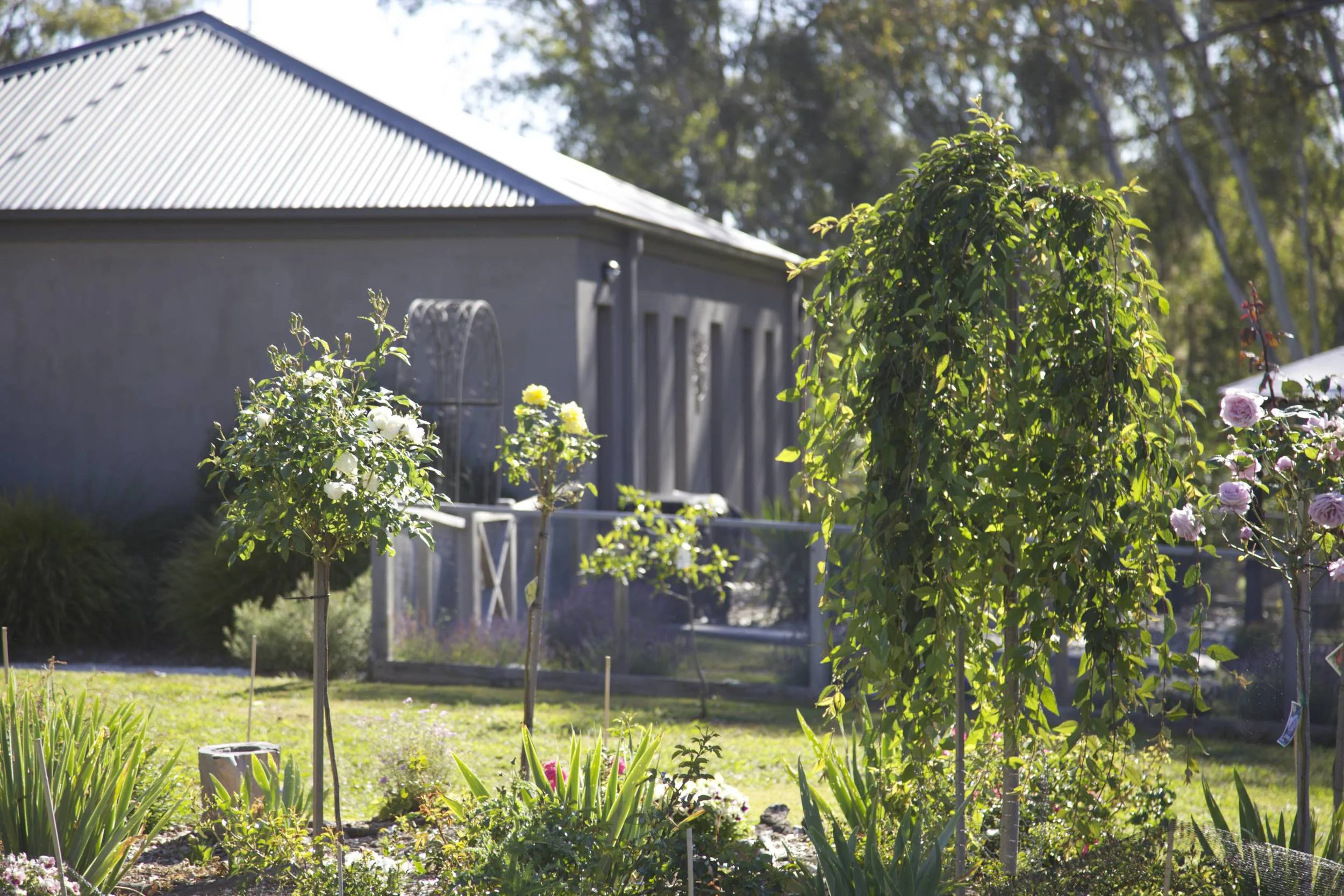 Relax and enjoy five acres of beautiful gardens overlooking Barkers Creek. Judi and Lou have built an oasis of calm, dotted with old rural charm, flower beds and gum trees. Take your time over breakfast in your private courtyard overlooking the creek, farmland and grazing cows. Later, meet the goats and Poppy the miniature pony, and enjoy the surprises of sculptures and garden features. Choose any number of shady seats and lawns to read, chat and enjoy a glass of local wine while waiting for the BBQ to warm up.